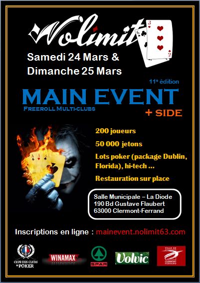 Nous vous invitons à notre Main Event qui aura lieu le Samedi 24 et Dimanche 25 Mars à Clermont-Ferrand